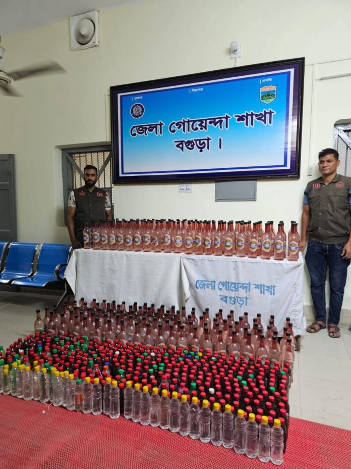 এইচ,এম নুরুল ইসলাম, বিশেষ প্রতিনিধি:গত শুক্রবার দিবাগত রাতে, বগুড়া জেলা গোয়েন্দা শাখা (ডিবি) র, অভিযানে শেরপুর উপজেলার শ্রীরামপুর এলাকায় পলাতক আসামী শ্রী হৃদয় বাসফোর (২৯), পিতা মৃত লালজি বাসফোর, সাং শ্রীরামপুর, শেরপুর, এর বসতবাড়ীর বসতঘরে অভিযান চালিয়ে, ২০০ বোতল কেরু এন্ড কোম্পানির Country Liquor মদ ৪১০ বোতল চোলাই মদসহ সর্বমোট ৬১০ বোতল মদ উদ্ধার করা হয়। আসামী হৃদয় বাসফোর এর বিরুদ্ধে পূর্বের ৩টি মাদক মামলা মামলা বিজ্ঞ আদালতে বিচারাধীন আছে।